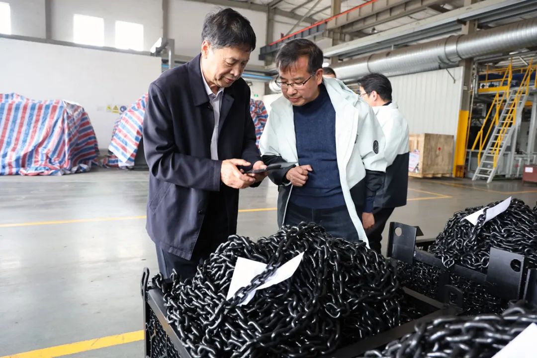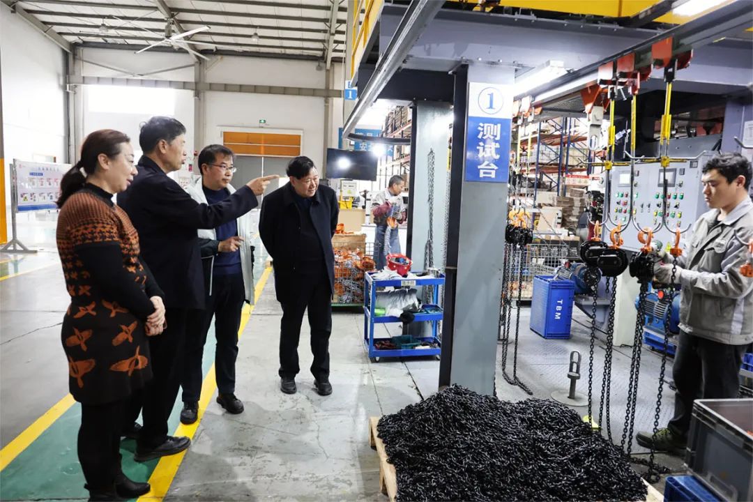 猫咪WWW免费人成网站集团张文忠董事长、盛嘉庆总经理陪同王会长一行参观了猫咪WWW免费人成网站机械总装车间、起重链条制造车间。