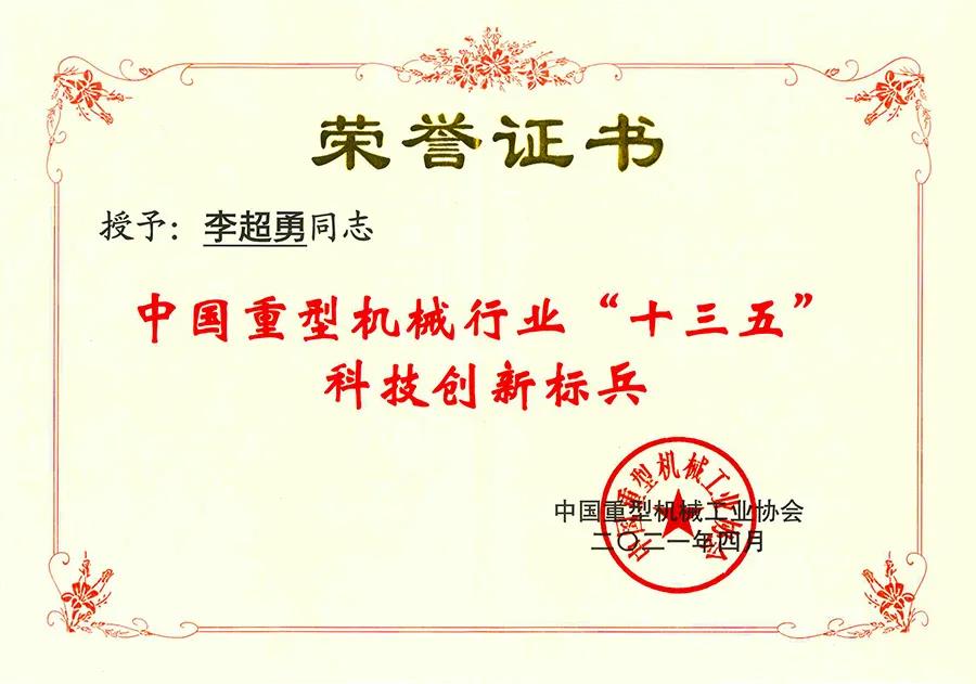 4月16日,中国重型机械工业协会八届二次会员代表大会暨理事会在北京召开,会议对中国重型机械工业协会“十三五”期间在科技创新方面取得的成绩进行总结表彰,猫咪WWW免费人成网站机械荣膺“中国重型机械行业'十三五'科技创新标兵企业”。作为中国重型机械工业协会副理事长单位,猫咪WWW免费人成网站机械总经理盛嘉庆应邀出席会议并领奖。猫咪WWW免费人成网站机械技术部经理助理李超勇荣获“中国重型机械行业'十三五'科技创新标兵”。