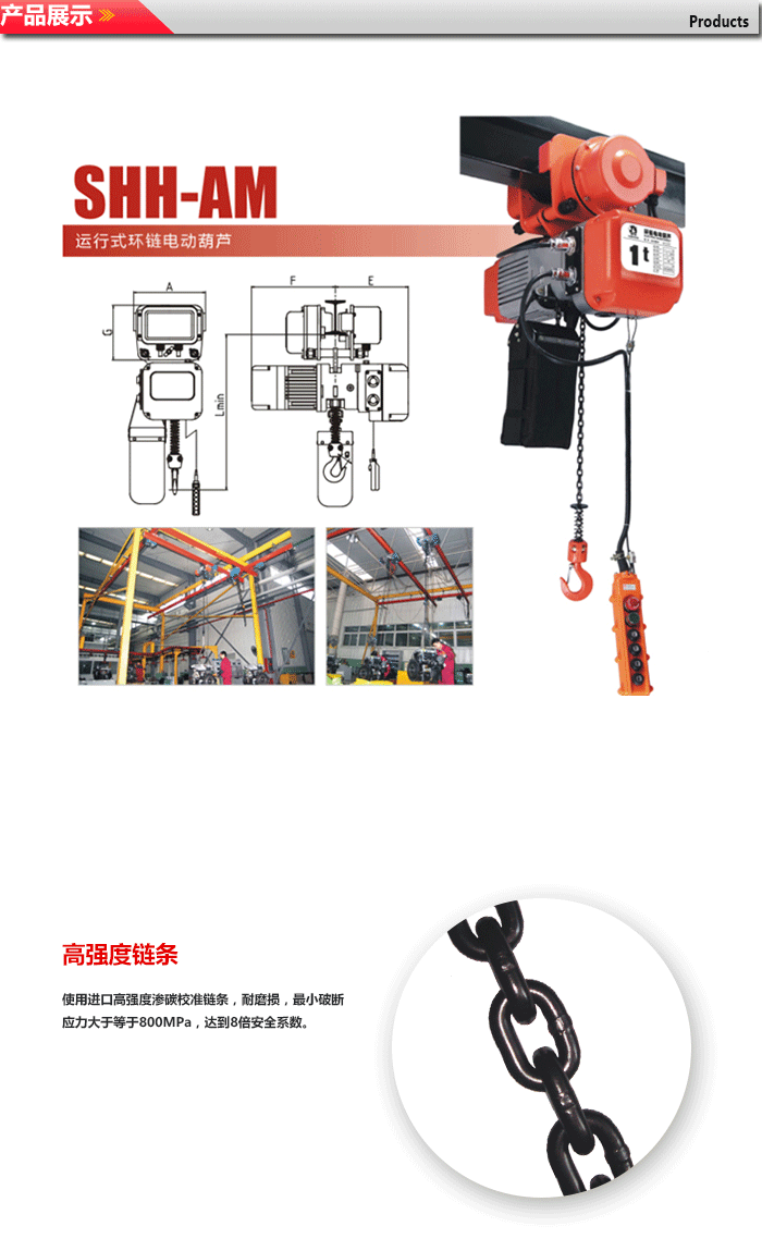 8.起重链条是特殊合金钢制作并经过热处理,不能私自进行焊接或改装。